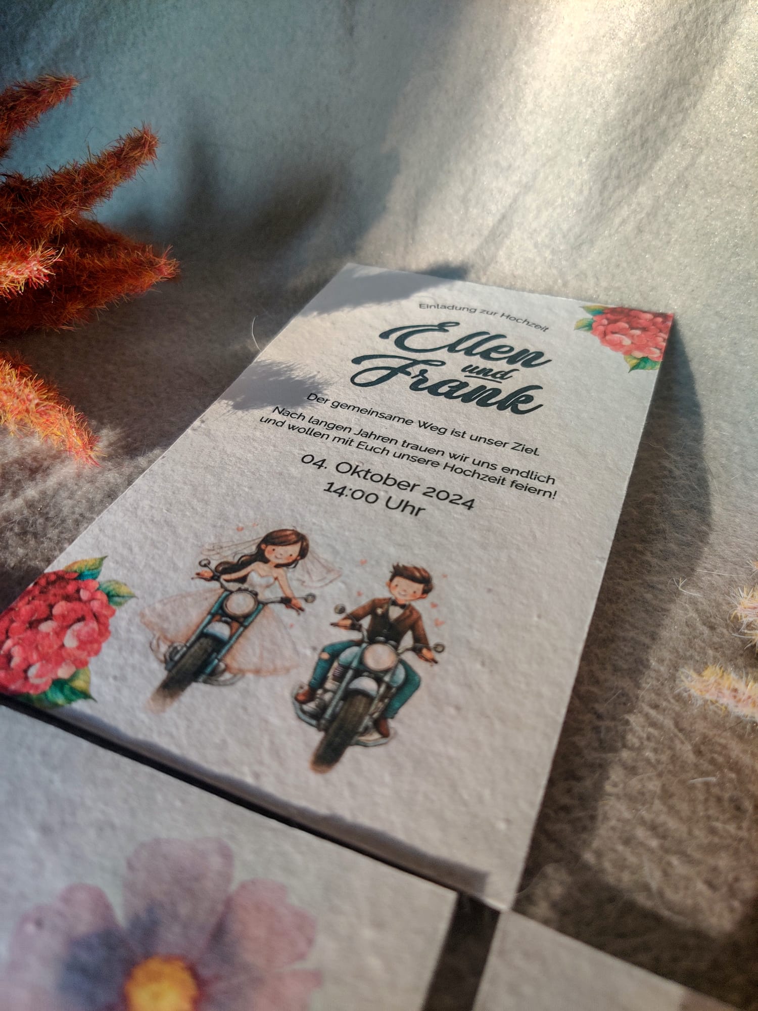 • Personalisierte Einladungen für Hochzeiten und Geburtstage
