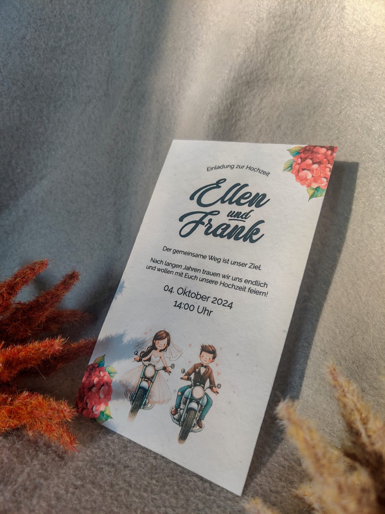 Bei uns findest Du alles, was Du brauchst, um Deine Hochzeit unvergesslich zu machen. Von Save-the-Date bis hin zu Dankeskarten bieten wir eine Vielzahl an Druckprodukten an, die Deine Gäste begeistern werden. Lass Dich inspirieren und entdecke unsere Hochzeitsdrucke für Deine Hochzeit.